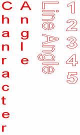 The examples on the left were created with the Text Tool. “Character Angle” was written with “Angle” on the first line and “Character” on the next line. Character Angle was set to 90 and Text Line Angle set to 270; this has not been “Converted to Polylines,” so it is still a font.